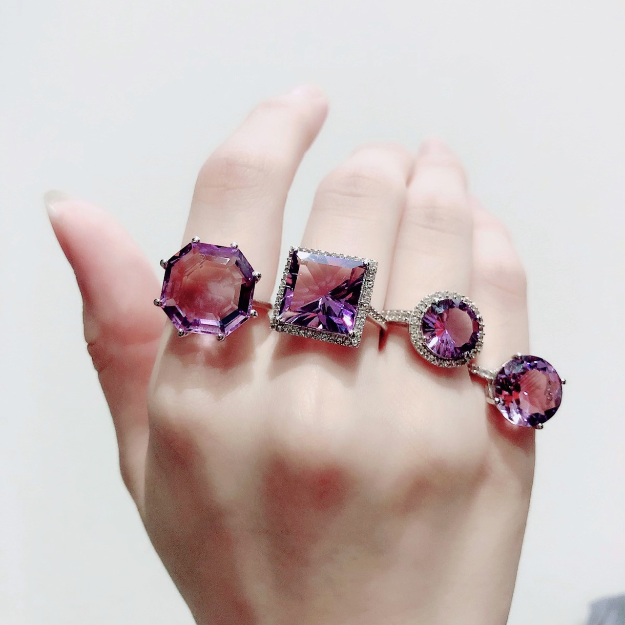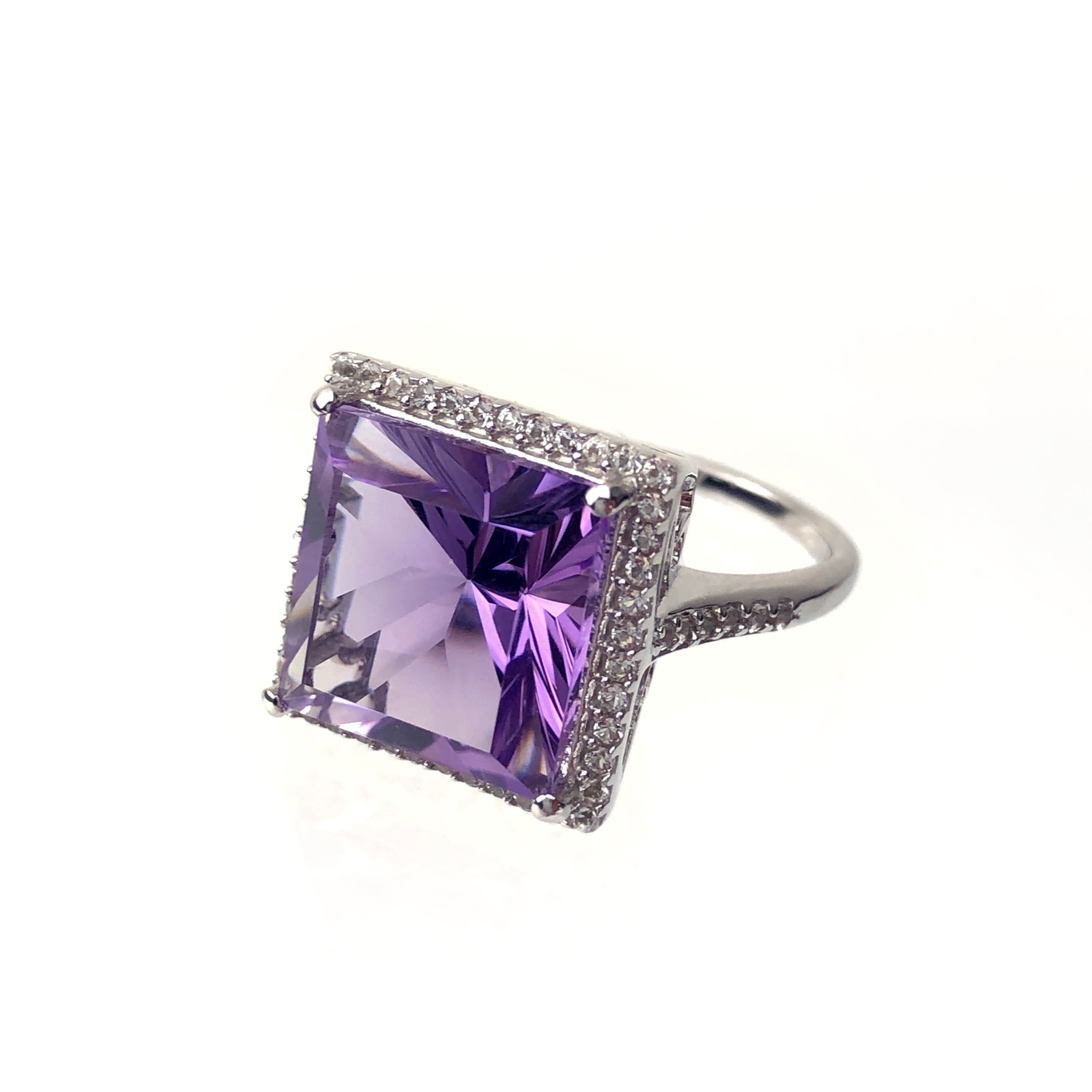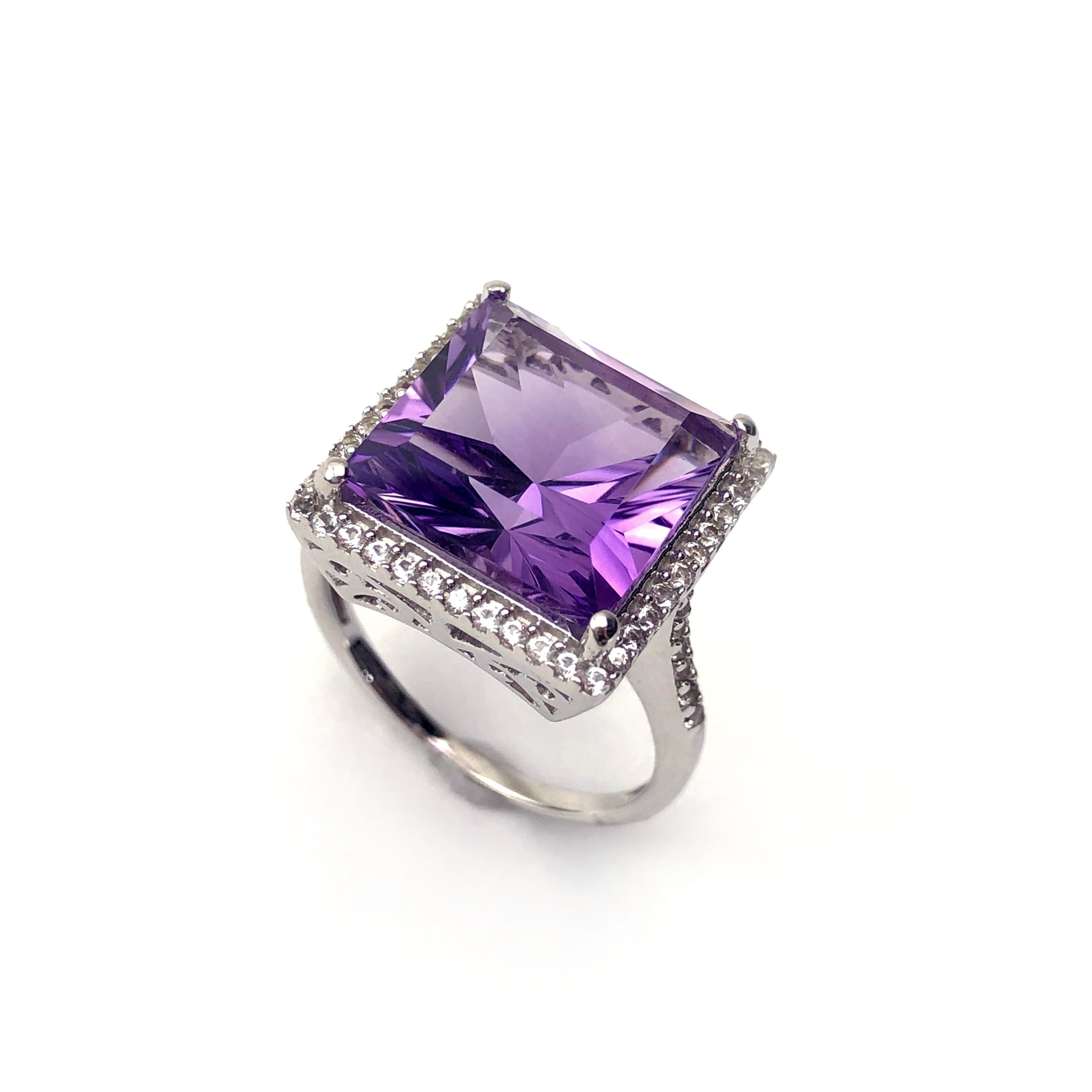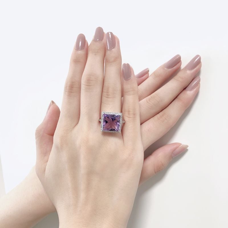 ブラジル産アメジスト スクエア リング | ビッグジュエリー 天然石 大粒 ジュエリー SILVER925 RING シルバー925 プラチナ仕上げ #13【Coco-Natsu】【cana'】 30737 | Coco-Natsu