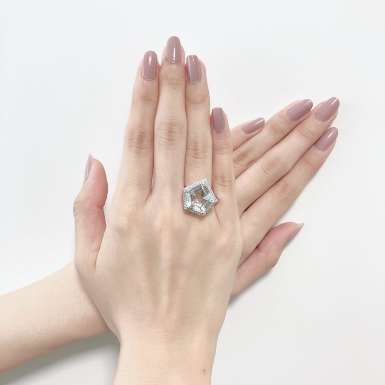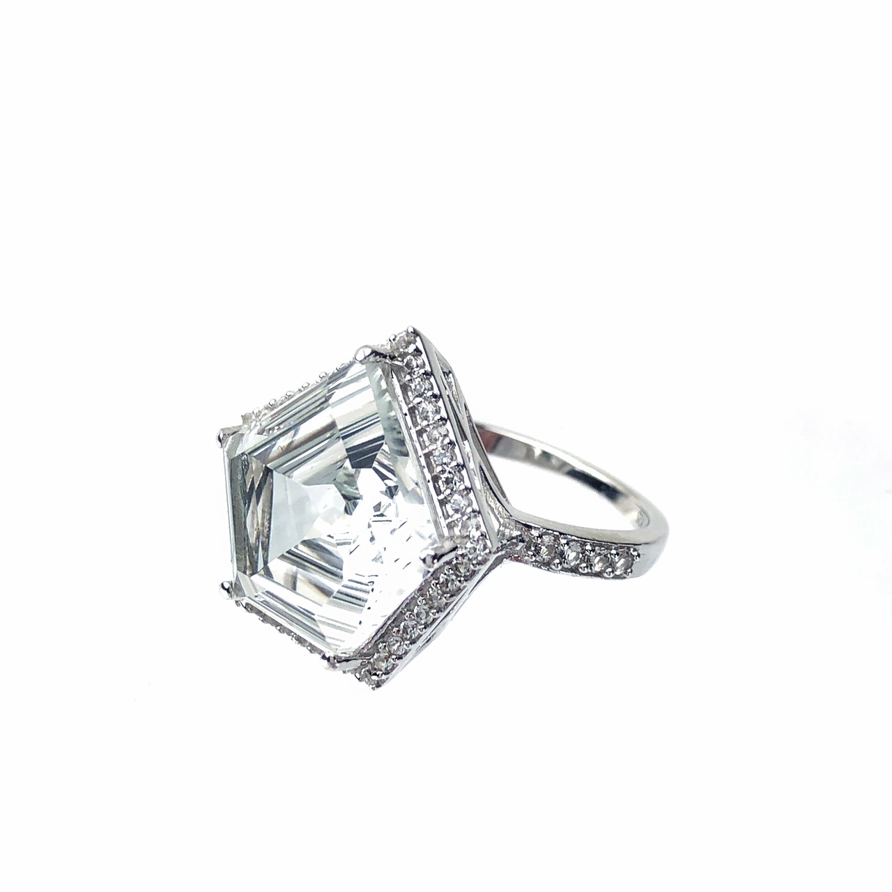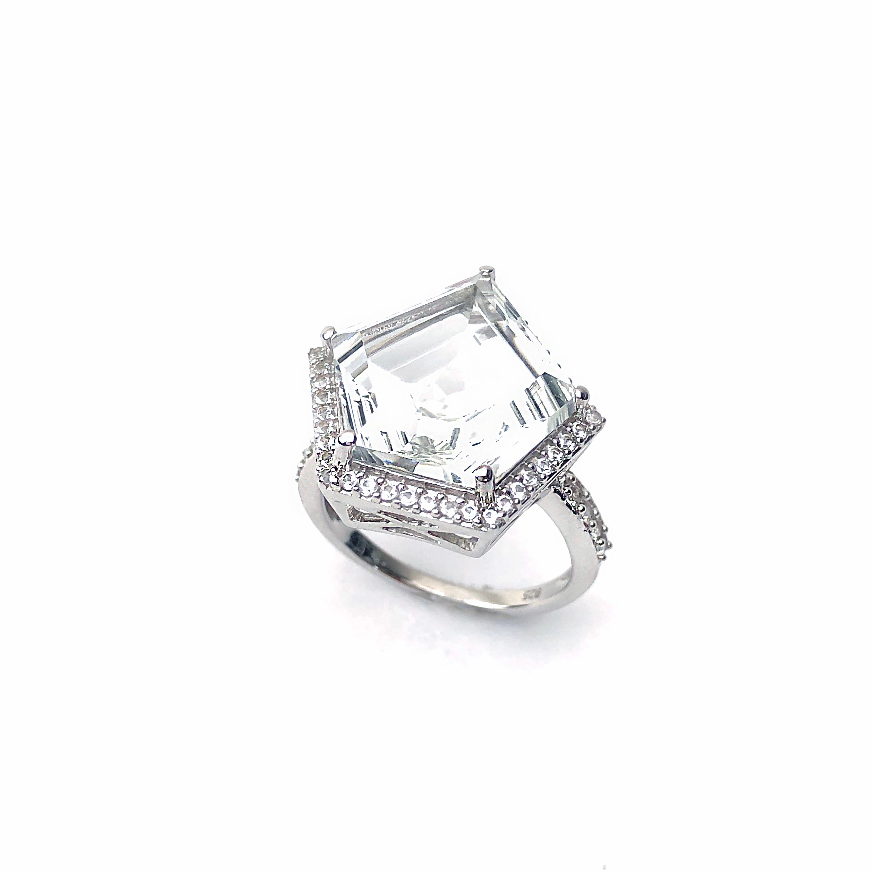 ペンタゴン ホワイトトパーズ リング | ビッグジュエリー 天然石 ジュエリー SILVER925 RING シルバー925 プラチナ仕上げ #13【Coco-Natsu】【cana'】 30744