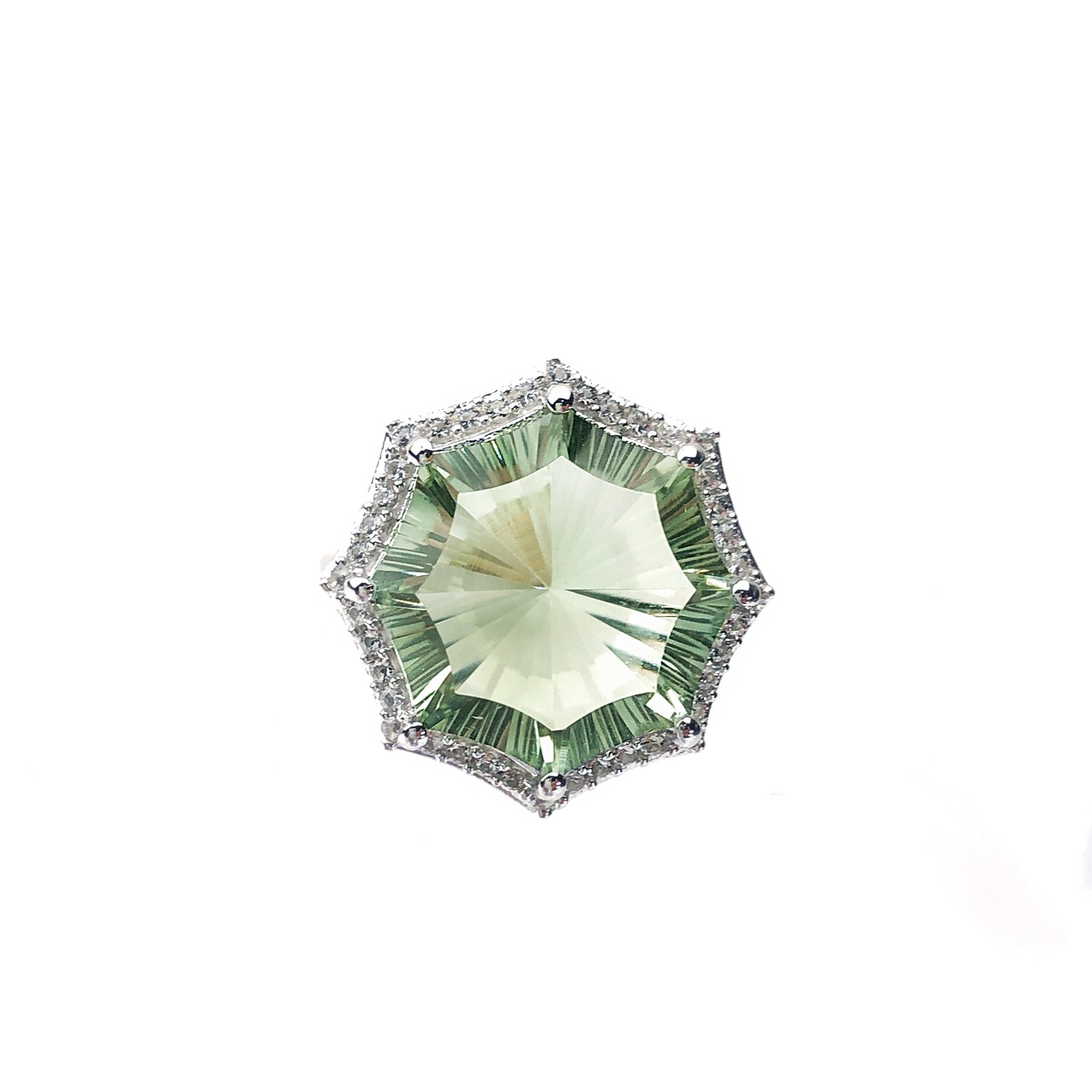 オクタゴン グリーンアメジスト リング | ビッグジュエリー 天然石 ジュエリー SILVER925 RING シルバー925 プラチナ仕上げ #13【Coco-Natsu】【cana'】 30751