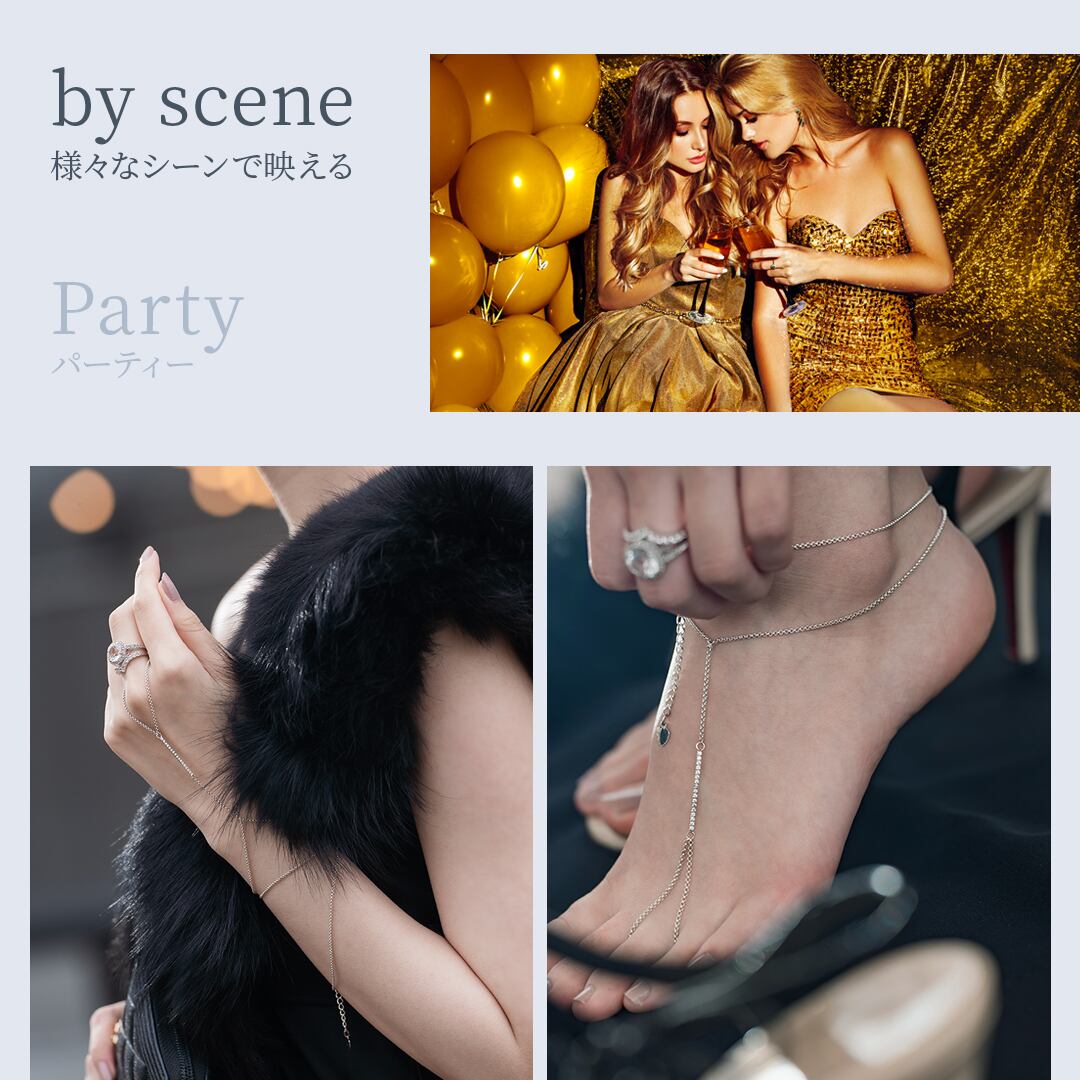 〈フィンガーブレスレット〉〈ネックレス〉〈アンクレット〉として、その時の気分でお好きなスタイルを楽しめます。